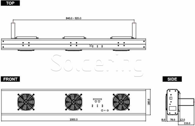 Programovateľný nadhlavný ionizátor SOB-3S - nákres