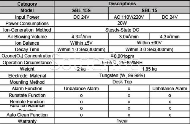 Programovateľný stolný ionizátor SBL-15S - technické údaje