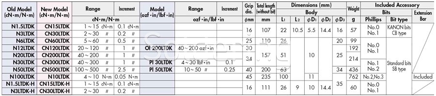 Technické údaje k porovnání Ručný momentový skrutkovač CN500LTDK