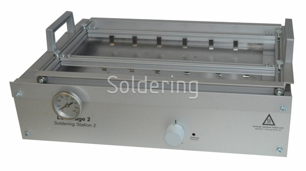 Toto zariadenie pracuje na princípe statické spájkovacie kúpele (ponorné spájkovanie, spájkovanie vlečením). Oba vnútorné diely spájkovacieho rámčeku (vozíčku) možno plynulo nastaviť (na šírku). Rámček prídržnými prsty, ktoré dovoľujú jednoduché zasunutie a vysunutie dosiek s plošnými spojmi, bez toho aby ste museli zakaždým nastavovať šírku. Prsty sú sú nerezové s ohľadom na cenu a množstvo spájkovaných dosiek.