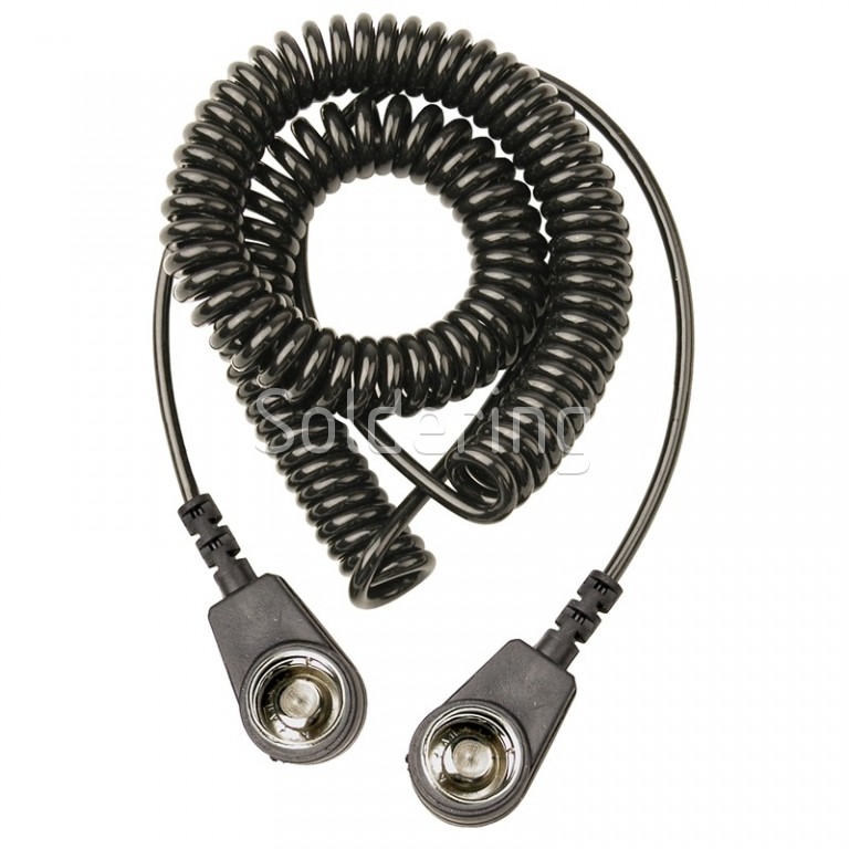 - Špirálový uzemňovací kábel určený na prepojenie ESD zemniacich náramkov so systémom uzemnenia.