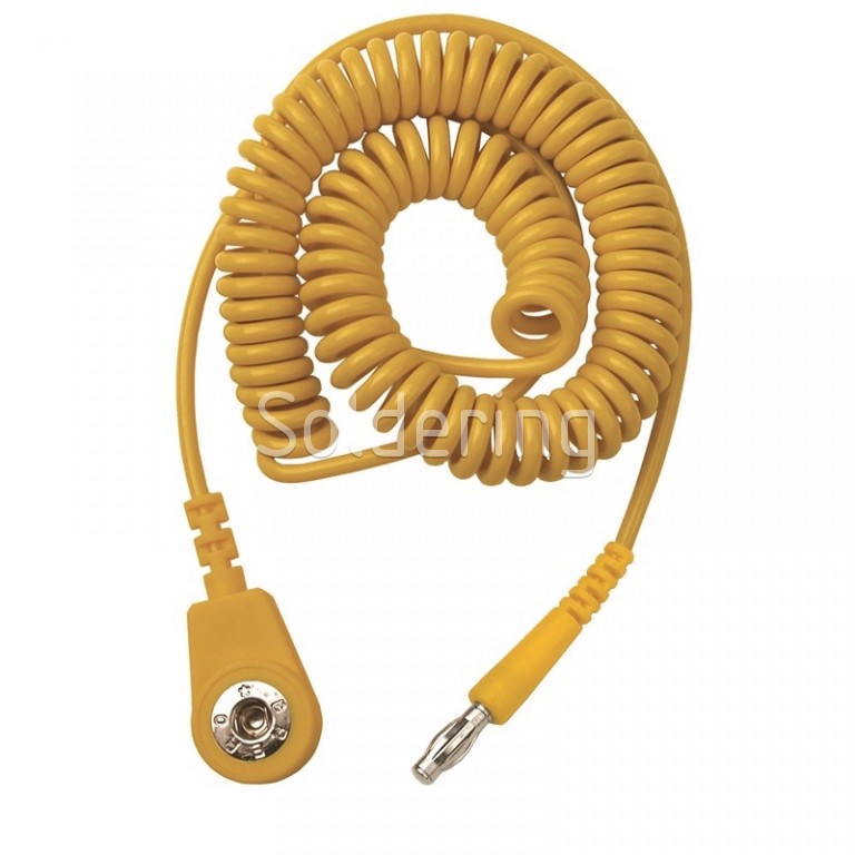 - Špirálový uzemňovací kábel určený na prepojenie ESD zemniacich náramkov so systémom uzemnenia.