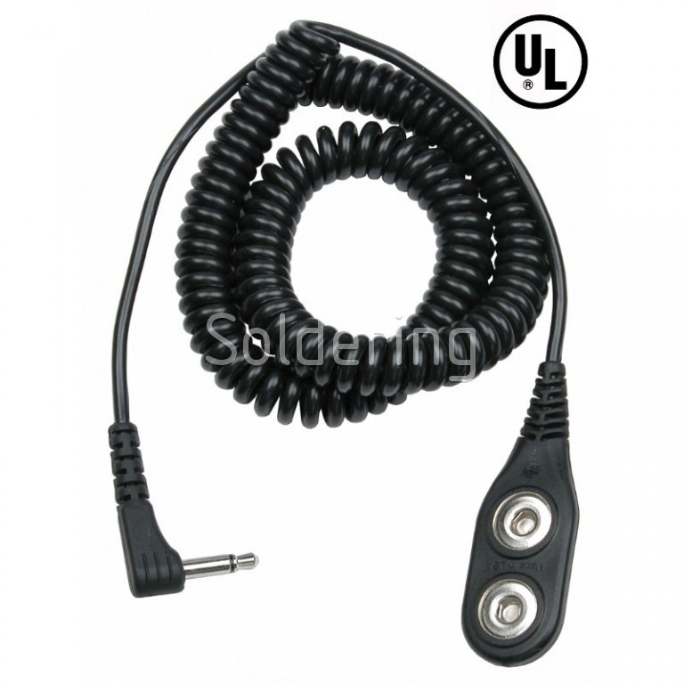 - Špirálový uzemňovací kábel určený na prepojenie ESD zemniacich náramkov so systémom uzemnenia.
