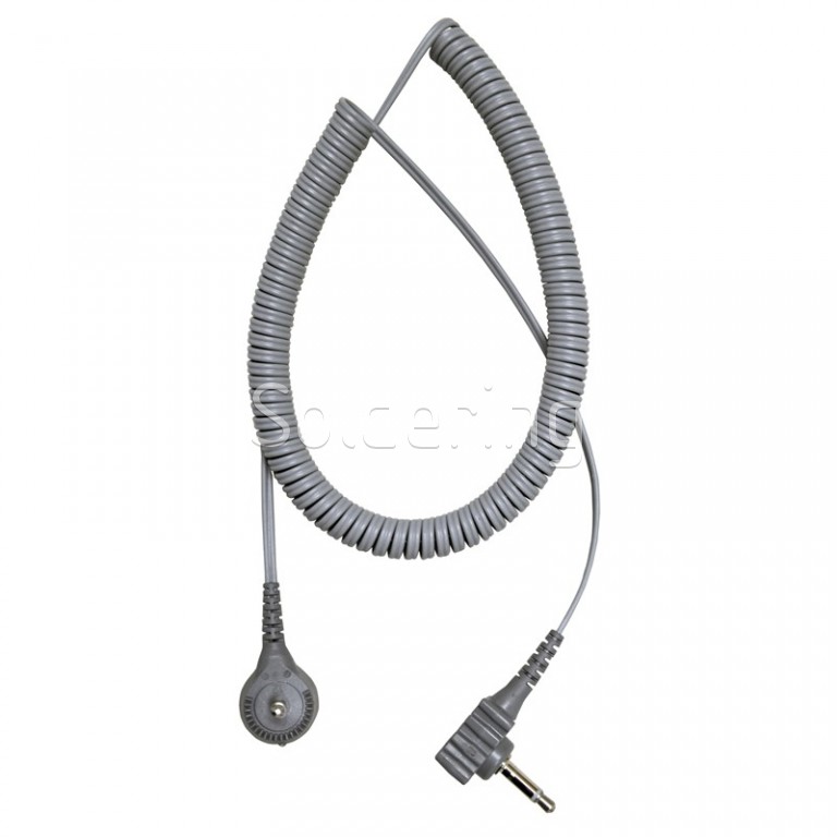 - Špirálový uzemňovací kábel určený na prepojenie ESD zemniacich náramkov so systémom uzemnenia.