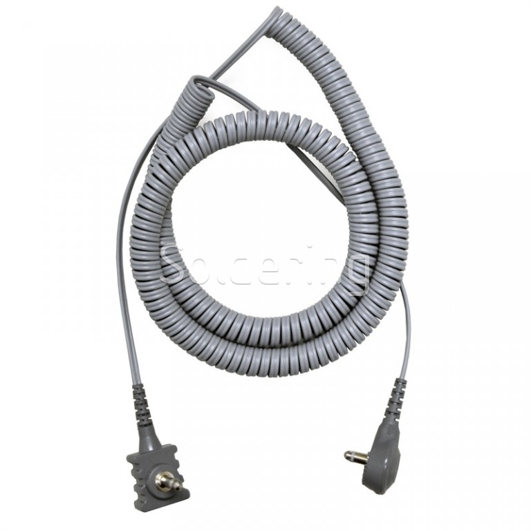 - Špirálový uzemňovací kábel určený na prepojenie ESD zemniacich náramkov so systémom uzemnenia.