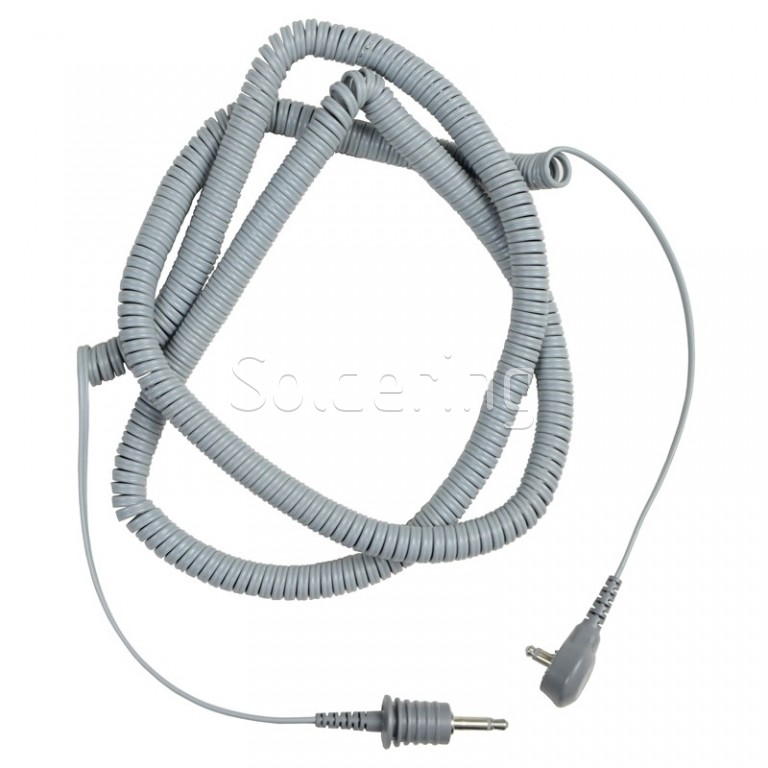 - Špirálový uzemňovací kábel určený na prepojenie ESD zemniacich náramkov so systémom uzemnenia.
