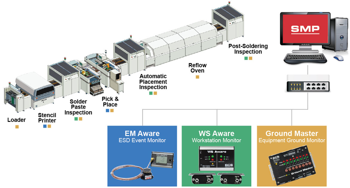 Program SCS Static Management (SMP) nepretržite sleduje váš riadiaci systém ESD procesov vo všetkých fázach výroby. SMP zachytáva dáta z SCS pracovísk, zariadení a ESD udalostí a poskytuje v reálnom čase obraz o kritických výrobných procesoch. Všetka činnosť je pre priebežné kontroly kvality uložené v databáze. Funkcia SMP umožňuje určiť oblasti záujmu a zabrániť ESD udalostiam. Kvantifikovateľné dáta vám umožňujú sledovať trendy, zvýšiť aktivitu a preukázať efektivitu systému ESD pre riadenie procesov.
