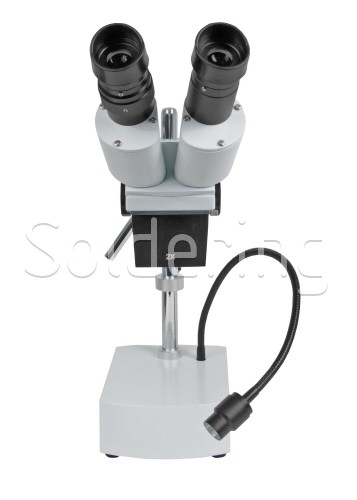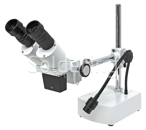 - Stereo mikroskop s LED osvetlením (2 W / 300 lúmenov) vo flexibilnom ramene.