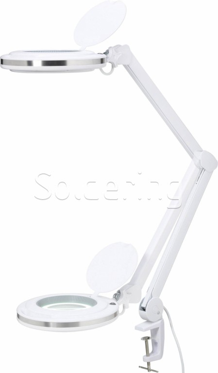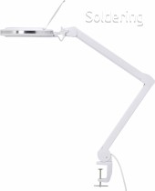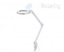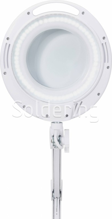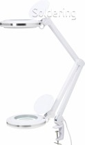 Výkonná a energeticky úsporná lupa s osvetlením v elegantnom kovovom prevedení osadená 60 diódami SMD LED. Veľmi kvalitná sklenená šošovka s 3násobným zväčšením (8 dioptrií) sa skvele hodí na detailné práce. Nastaviteľné rameno lupy umožňuje pracovať v mimoriadne veľkom priestore. Odolná kovová konštrukcia s rukoväťou umožňuje ľahké nastavenie lampy.