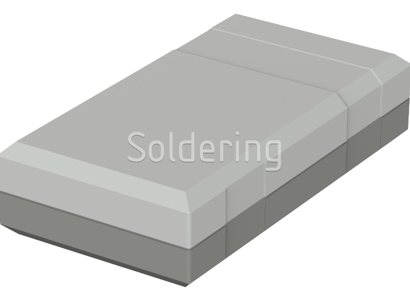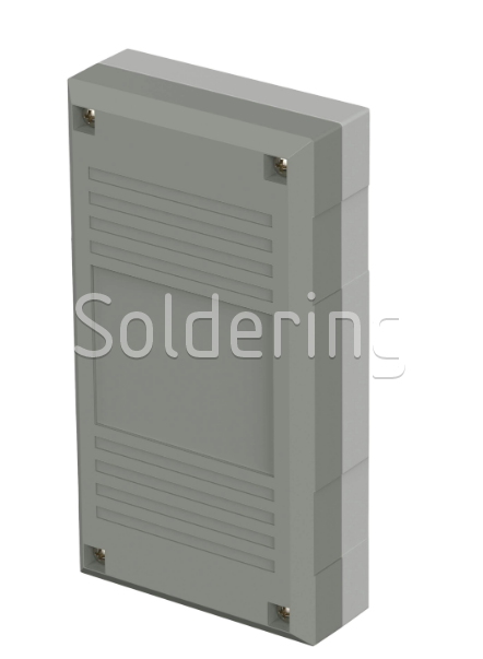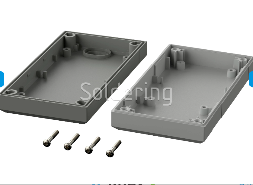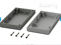 - V každej polovici puzdra sú plôšky pre samorezné skrutky a vodiace drážky pre zvislú montáž dosiek plošných spojov