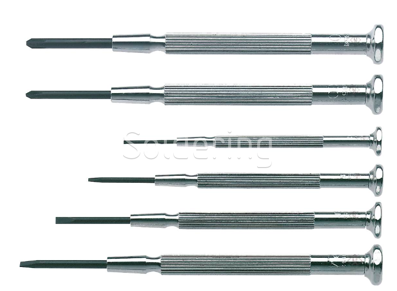 Plochý: 1 x 15, 1,6 x 20, 2 x 22, 2,4 x 25 mm, Phillips: 00 x 25, 0 x 25 mm