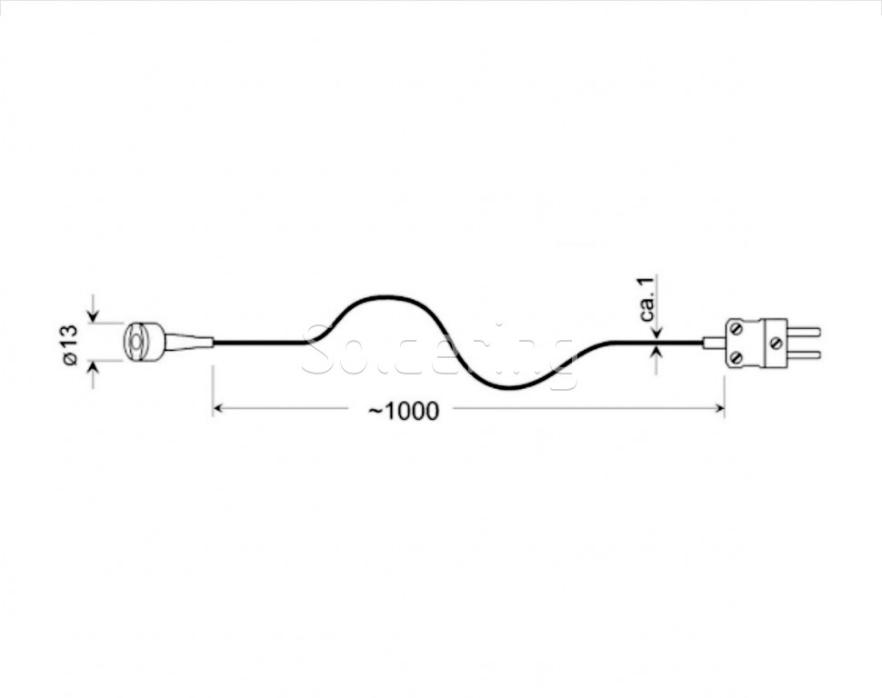 Sonda pre povrchové merania, samodržiace vďaka magnetu Sonda s kovovými doštičkami (Ø 5 mm). Priemer sondy 13 mm. 1 m koucené vedenie s teflónovou izoláciou. Mini konektor pre snímače teploty.