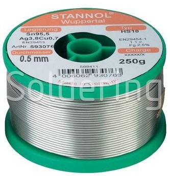 Trubičková spájka Sn95Ag4Cu1, HS10 (Ø0,5mm, 250g)