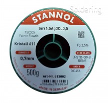 Trubičková spájka Sn96,5Ag3Cu0,5, SAC305 (Ø0,7mm, 500g)
