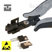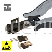 - Špeciálne kliešte, ktoré umožňujú jednoduchú operácií ohnúť komponenty TO 220 do uhla 90 °, a to takým spôsobom, že centrálna vodič bude o 2,54 mm kratšia, než bočné vodiče.