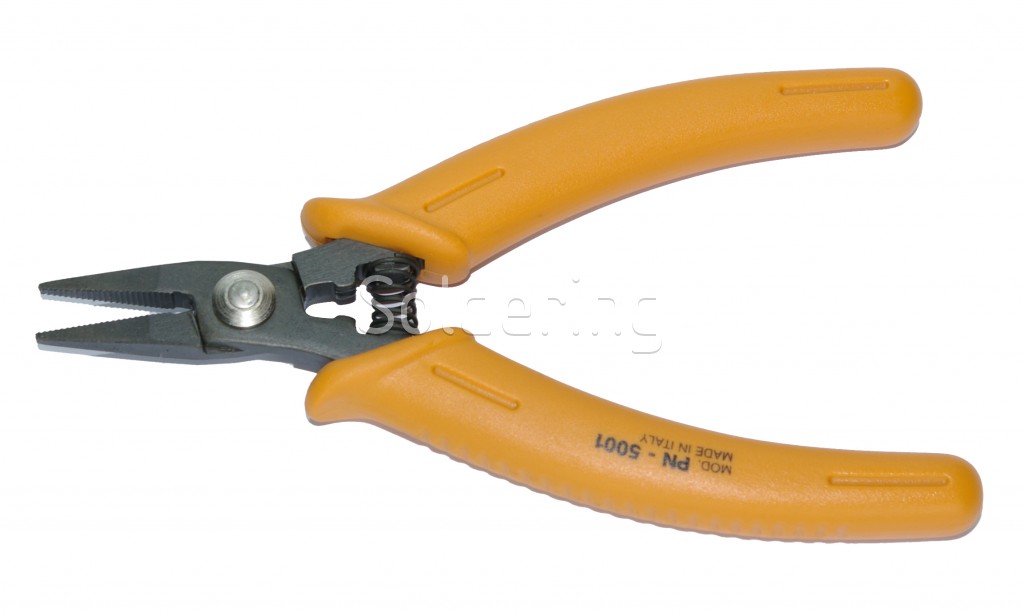 - Zúbkované, zašpicatené, krátke kliešte určené na všeobecnej manipulácie so všetkými typmi komponentov.