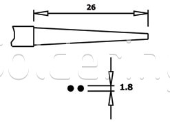- Priemer špičky 1,8 mm, dĺžka čeľuste 26 mm.