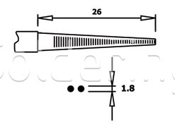 - Priemer špičky 1,8 mm, dĺžka čeľuste 26 mm.