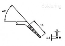 - Zúbkované kliešte s dlhými špicatými čeľusťami, zahnutými do uhla 45 °.