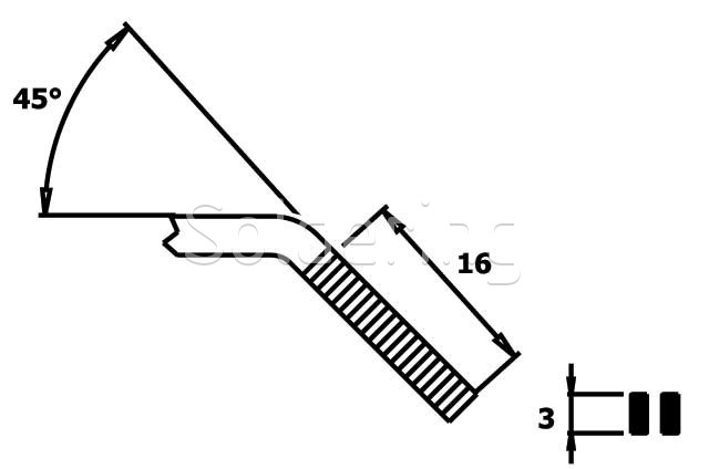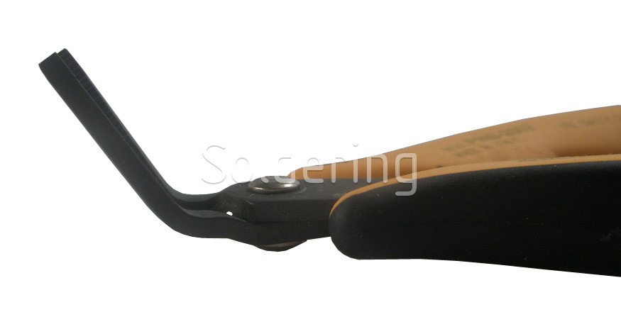 - Zúbkované kliešte s dlhými špicatými čeľusťami, zahnutými do uhla 45 °.