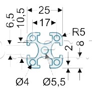 Technické údaje k porovnání Univerzálny profil PU25, prírodne eloxovaný, 25x25mm, 1000 mm