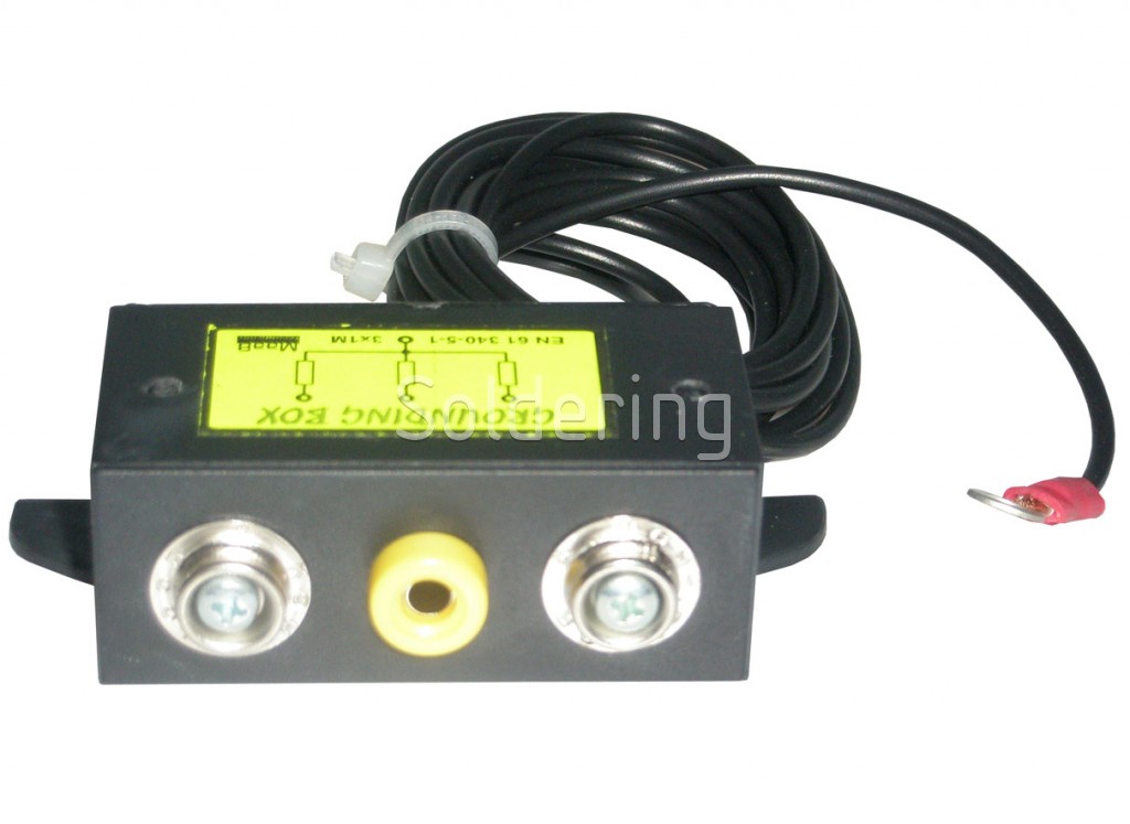 Uzemňovací box tvorí plastová krabička, na ktorej čele sú tri pripojovacie miesta. Z krabičky vychádza 2,5 m dlhý vývod, ktorého zakončenie je káblové oko. Vnútorné prepojenie svoriek je buď cez ochranné rezistory 1 MOhm alebo priame. Jednoduchá montáž dvomi skrutkami M3 alebo vrutmi Ø 3 mm na spodnej pracovnej plochy stola alebo police. Plastový kryt je vystužený stĺpiky proti možnému pretiahnutia.