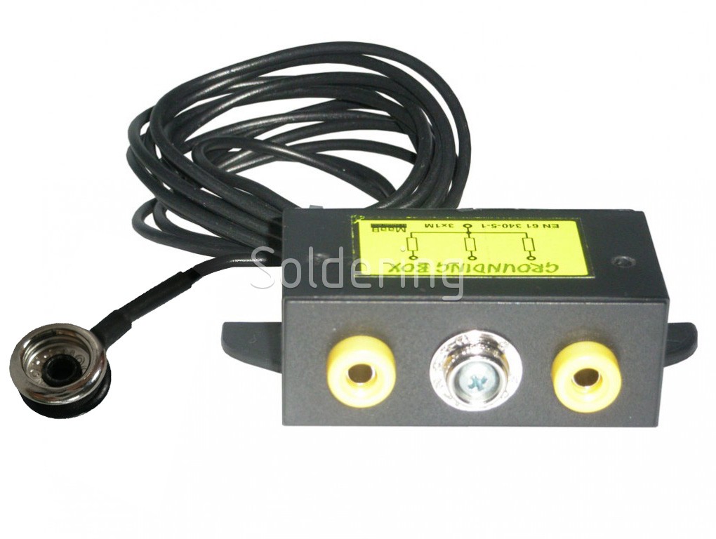 - Uzemňovací box s dvoma banánkovýma zdířkama, 1 patentom 10 mm, zakončenie patent 10 mm, vnútorné odpory 1M.