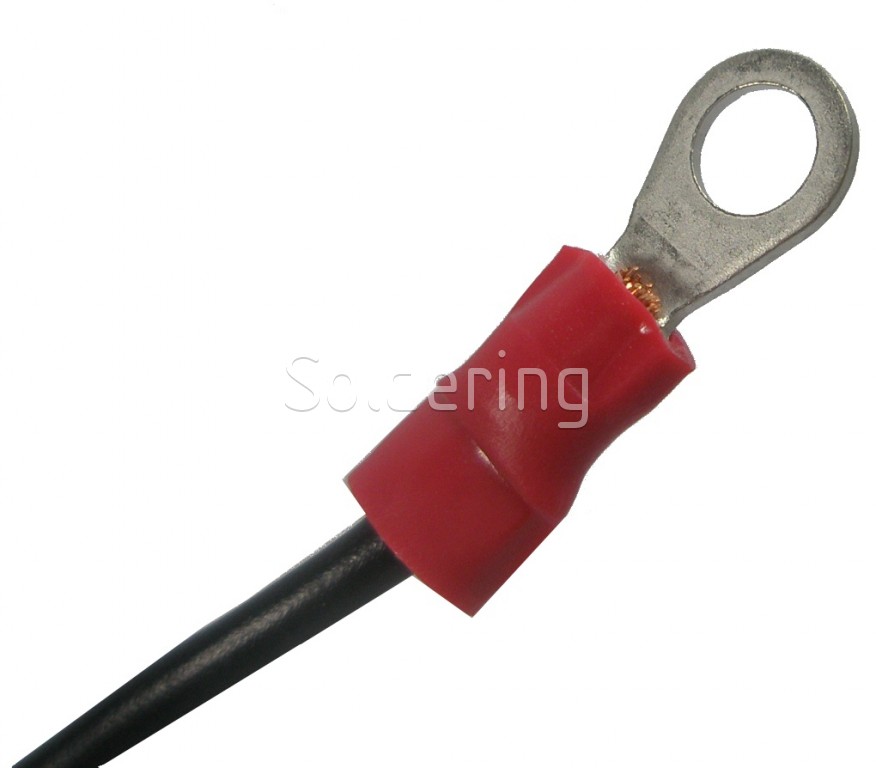 - 2 vstupné banánové zdierky, dĺžka 4,5 m, zakončený očkom, 1MΩ rezistor.