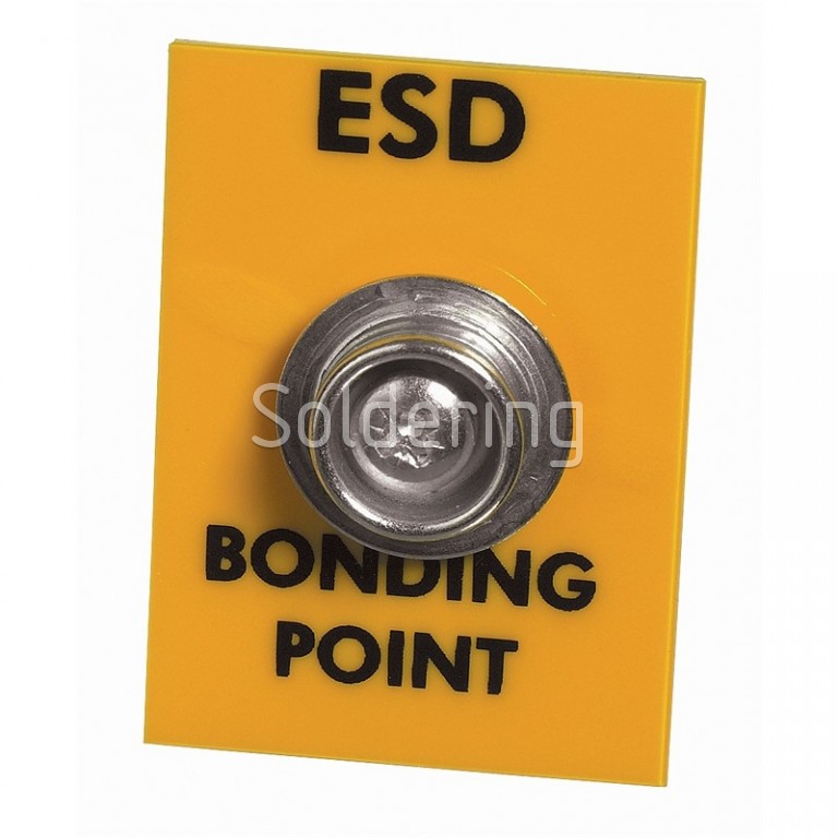 Vytvára ESD uzemňovací bod na paneloch, regáloch, skriniach, atď. Max. hrúbka panelu 3,5 mm, priemer otvoru 6 mm. Dodáva sa ako sada s montážnym návodom.