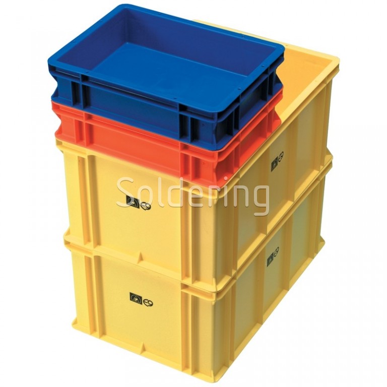 Sedí na všetky prepravky s rozmermi 400 x 300 mm. Žlté. Vyrobené z trvalo antistatického E9 polypropylénu.