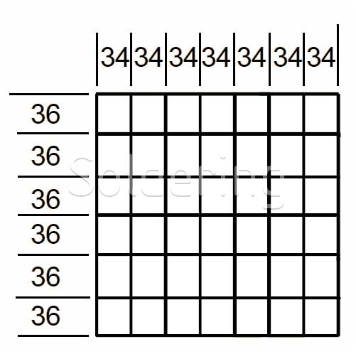 42 priehradok s rozmermi 34 x 36 x 20 mm.