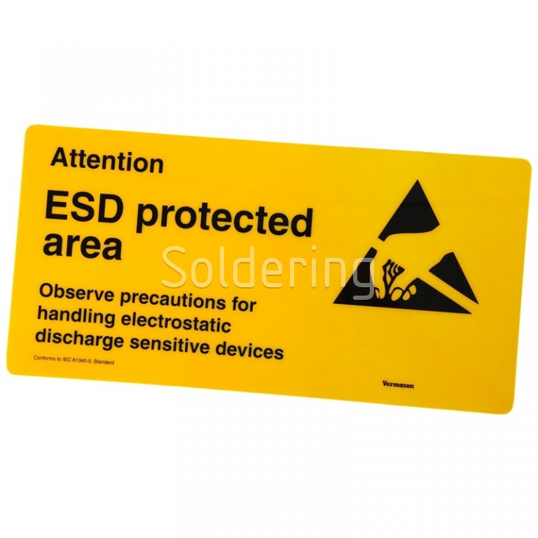 Lepiaci štítok, označujúci vstup do chránených priestorov EPA. Rozmery 100 x 50 mm, PVC s hrúbkou 0,4 mm, ošetrené antistatickým povlakom.